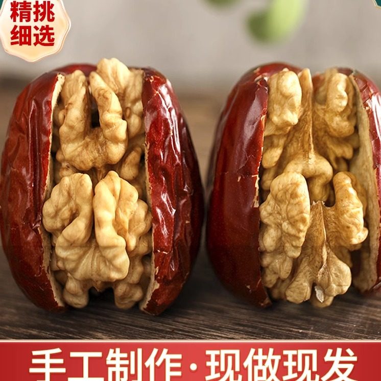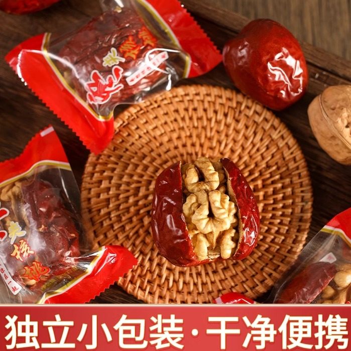 红枣夹核桃仁特大红枣狗头枣夹核桃礼盒装单独独立包装零食孕妇