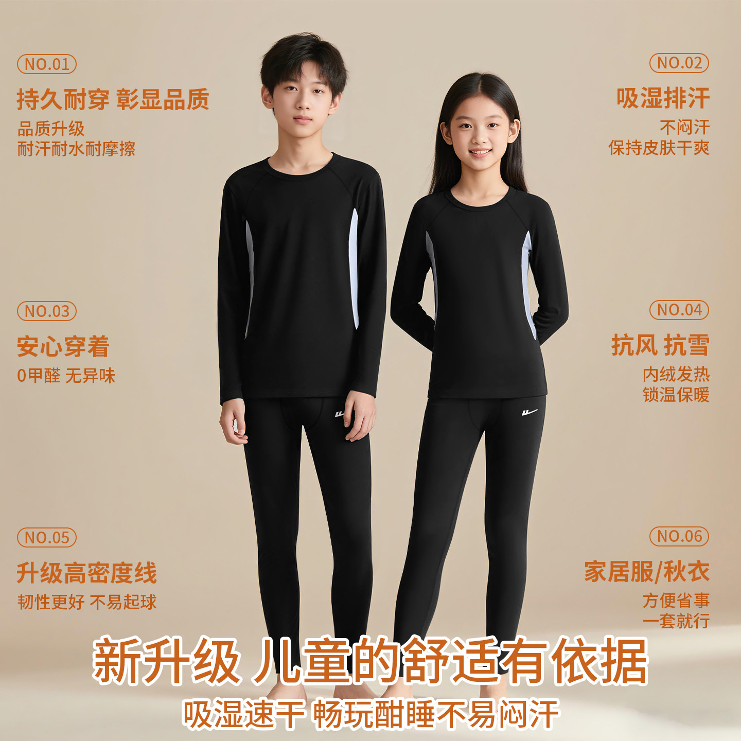 推荐理由:回力男童保暖套装秋冬加绒衣裤儿童初高中生内胆套装中大童速干衣