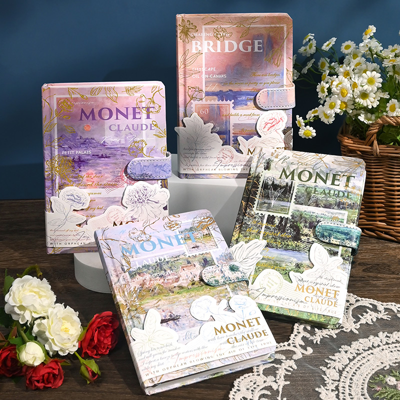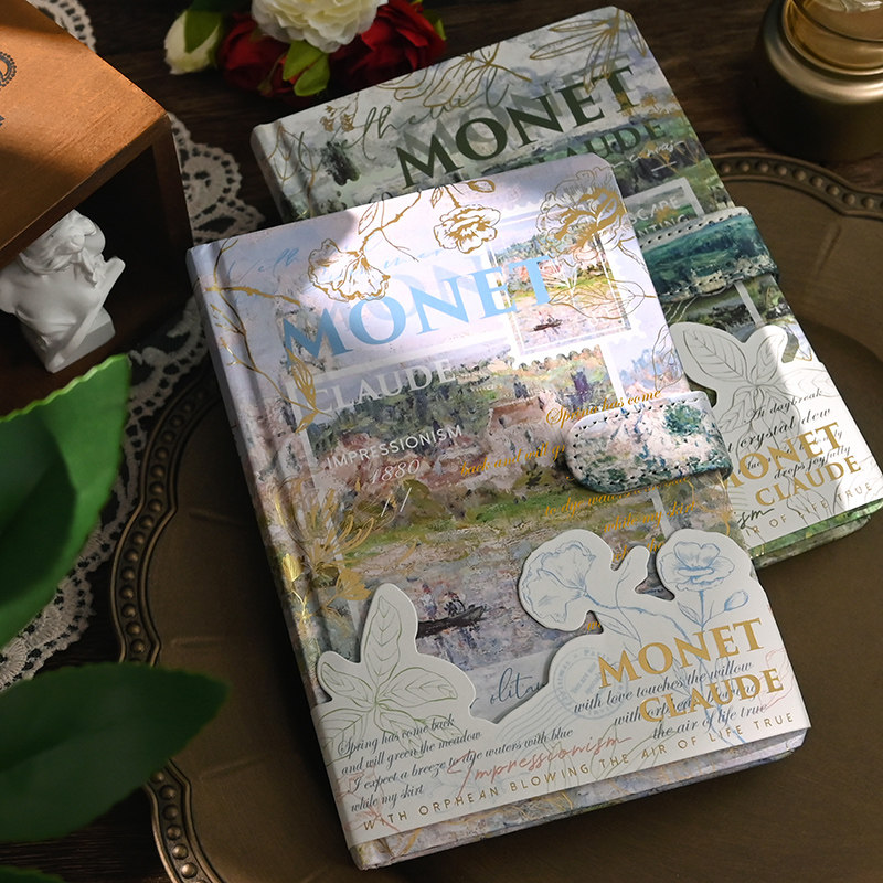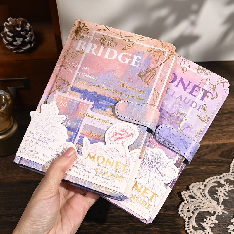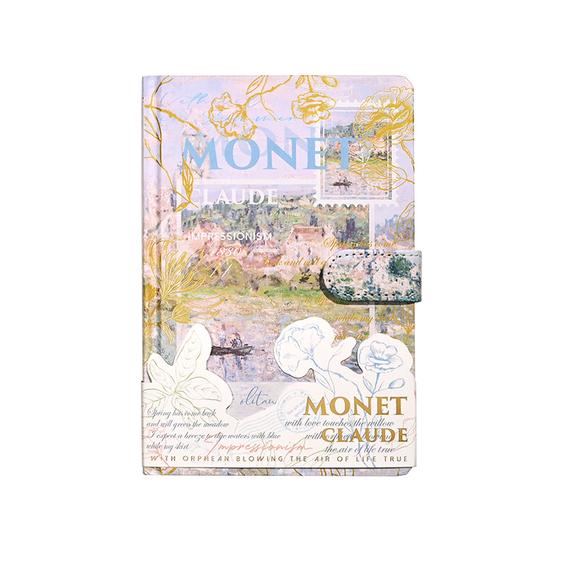 莫奈油画笔记本文艺复古手账本高颜值手帐本女孩本子加厚精装摘抄本精致磁扣本日记本记事本彩页小学生文具