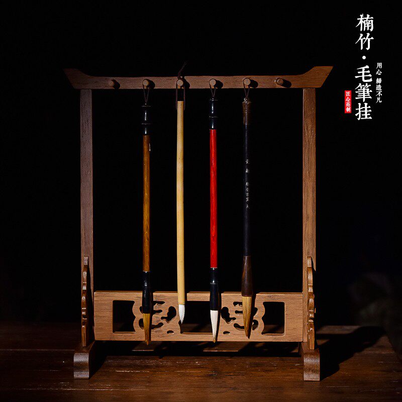 创意文房四宝复古楠竹笔架毛笔挂简约现代学生书法收X纳桌面小摆