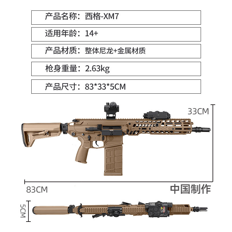 推荐理由:西格绍尔XM7金齿电动突击步枪三角洲游戏模型道玩具wargame发射器