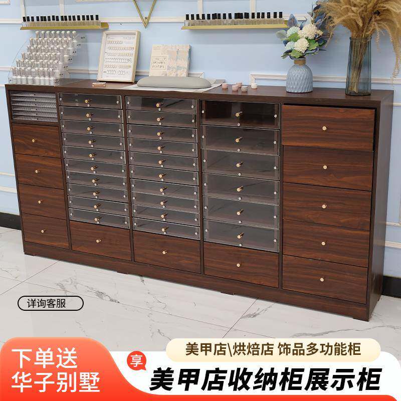 中古风美甲柜子指甲油展示柜美甲店抽屉式收纳柜甲油胶落地储物柜