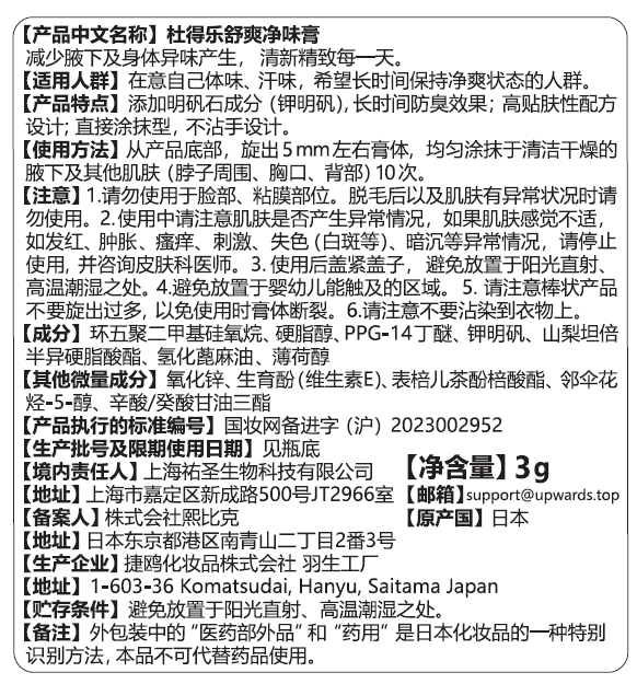 日本杜得乐止汗露女腋下除臭消臭石止汗石膏非喷雾粉色户外便携3g