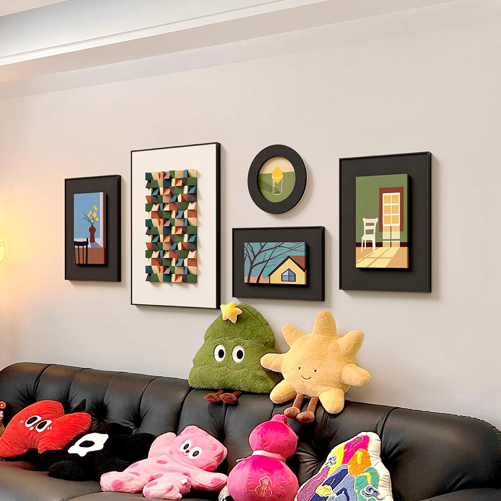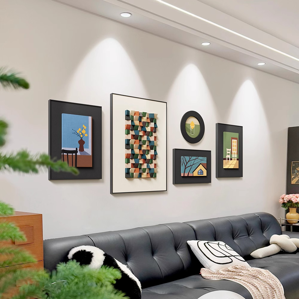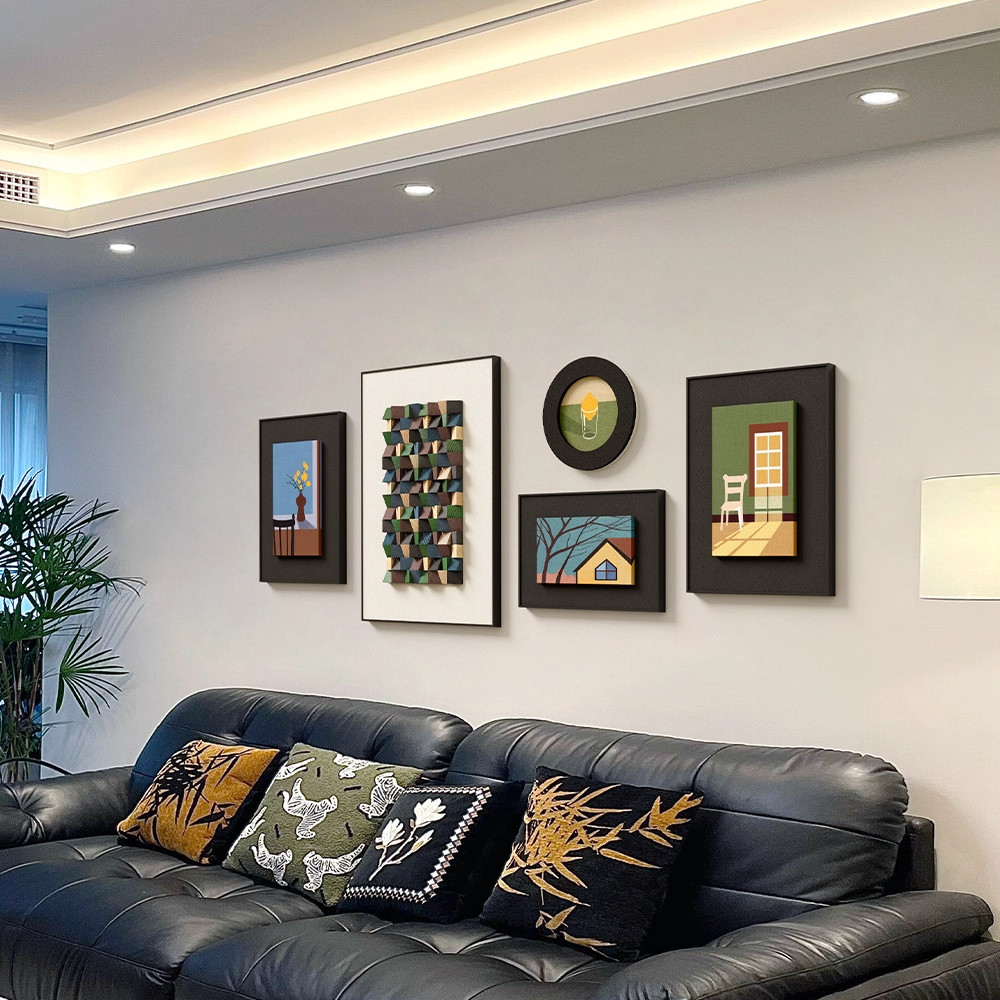 立体客厅装饰画法式沙发背景墙挂画组合砂岩壁画墙面高级简约