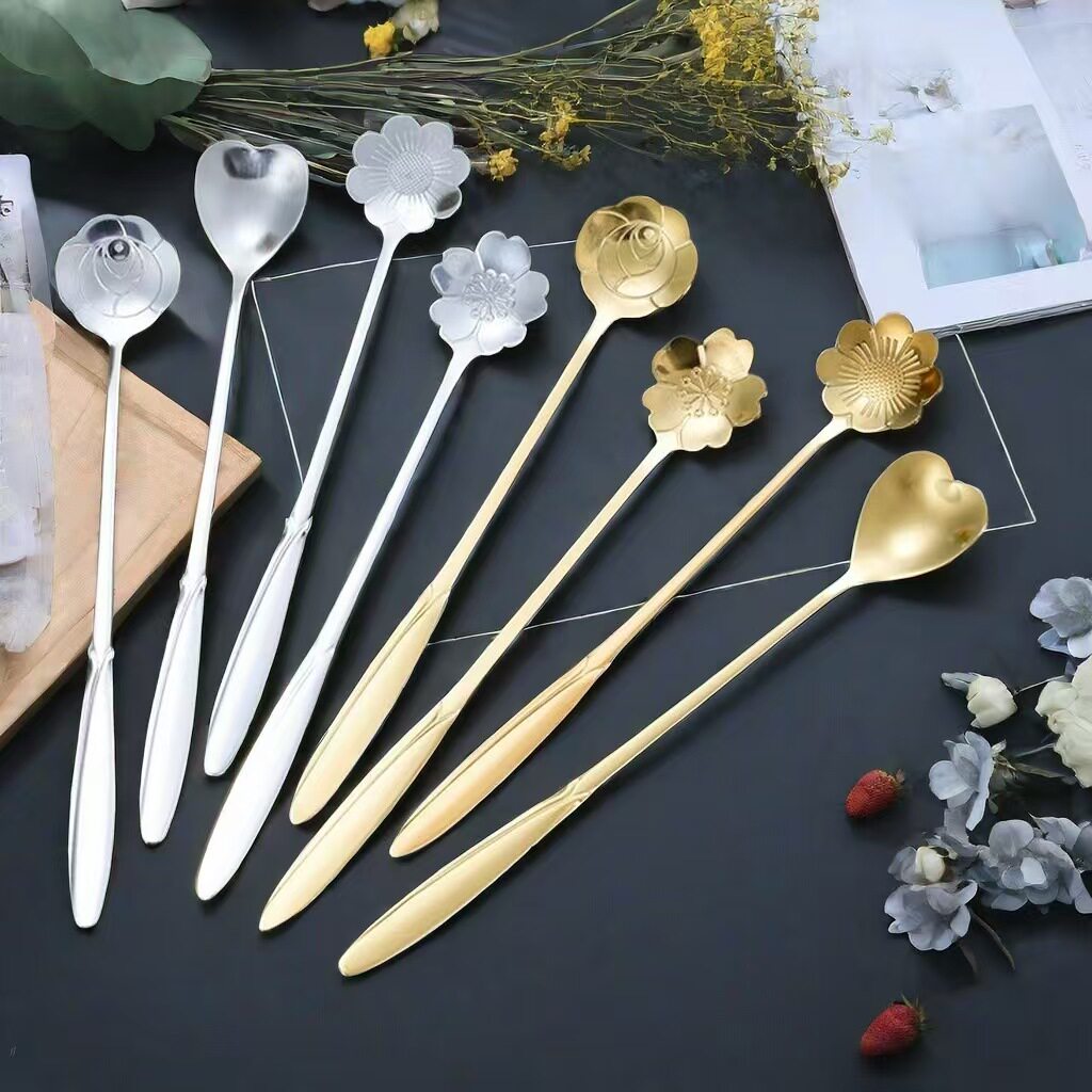 不锈钢花勺樱花玫瑰花勺婚礼长柄心形勺咖啡搅拌勺伴手礼燕窝蜂蜜