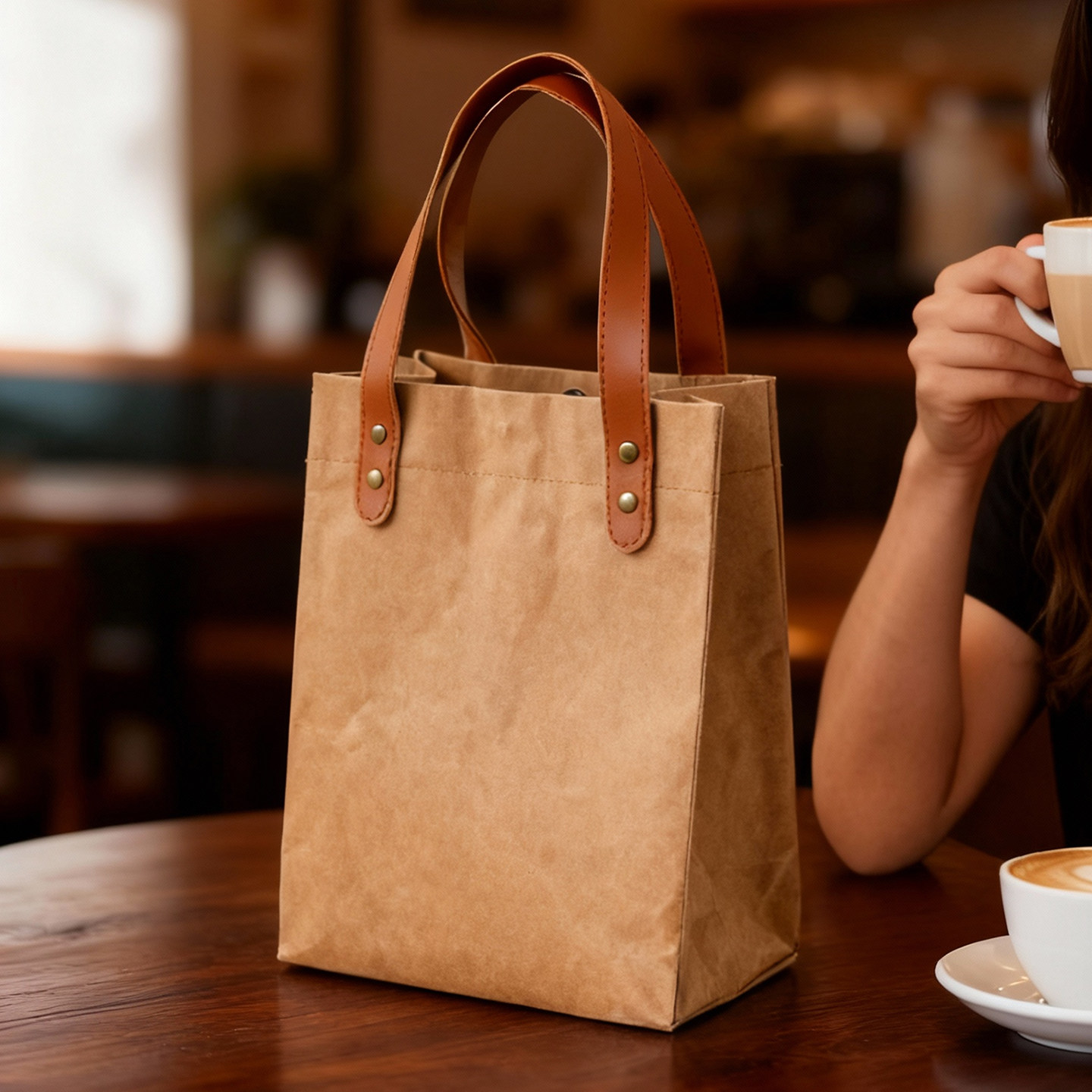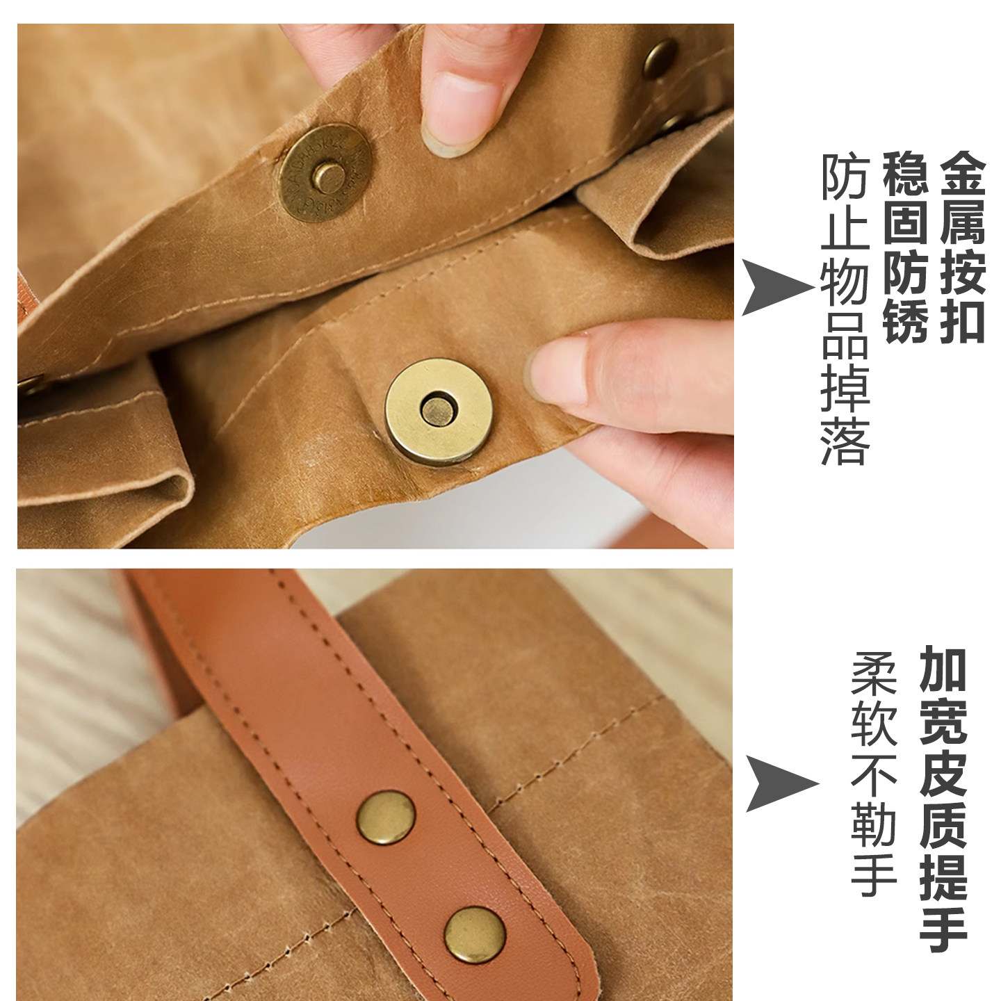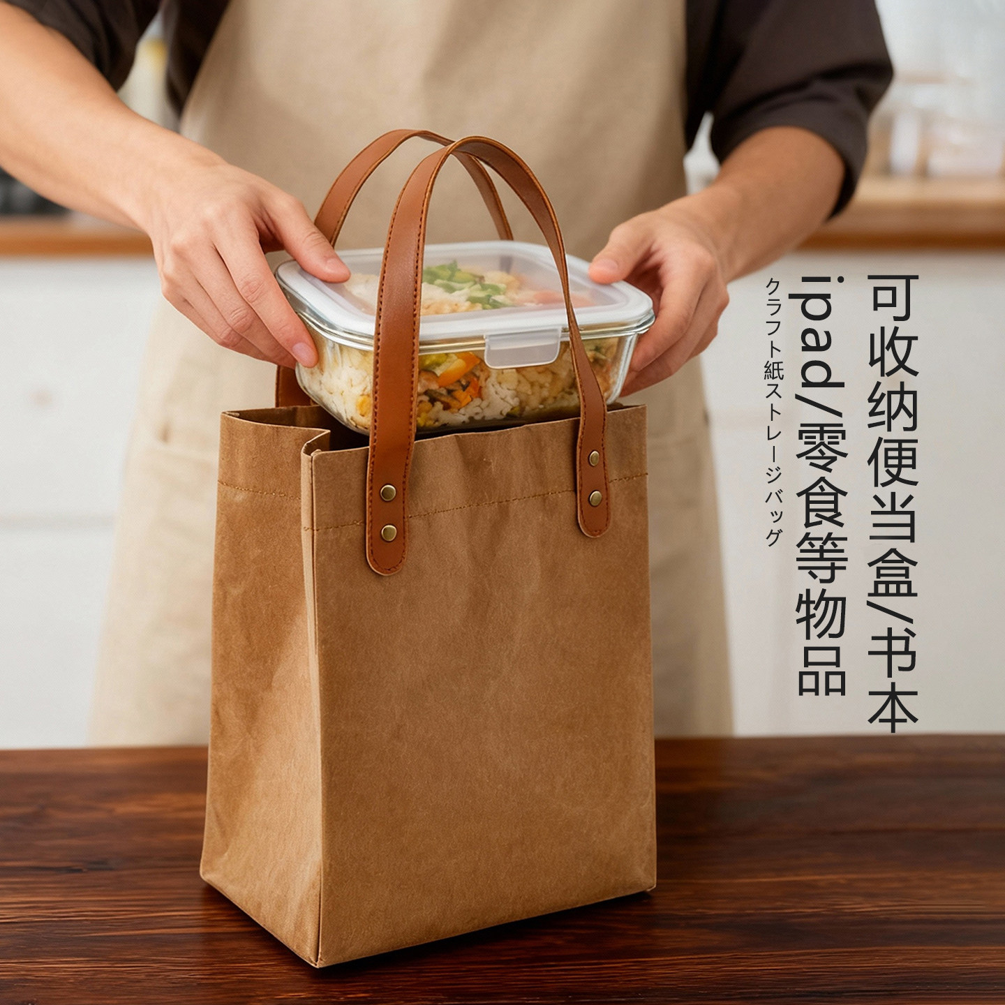 日系简约防水牛皮纸购物礼品收纳袋通勤上班手提便当饭盒袋可水洗