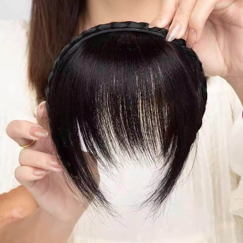 新款辫子发箍浏海一体真发前额头帘鬓角遮白发碎齐浏海假发片