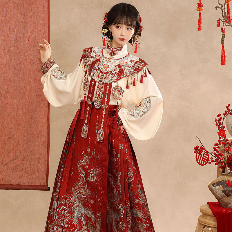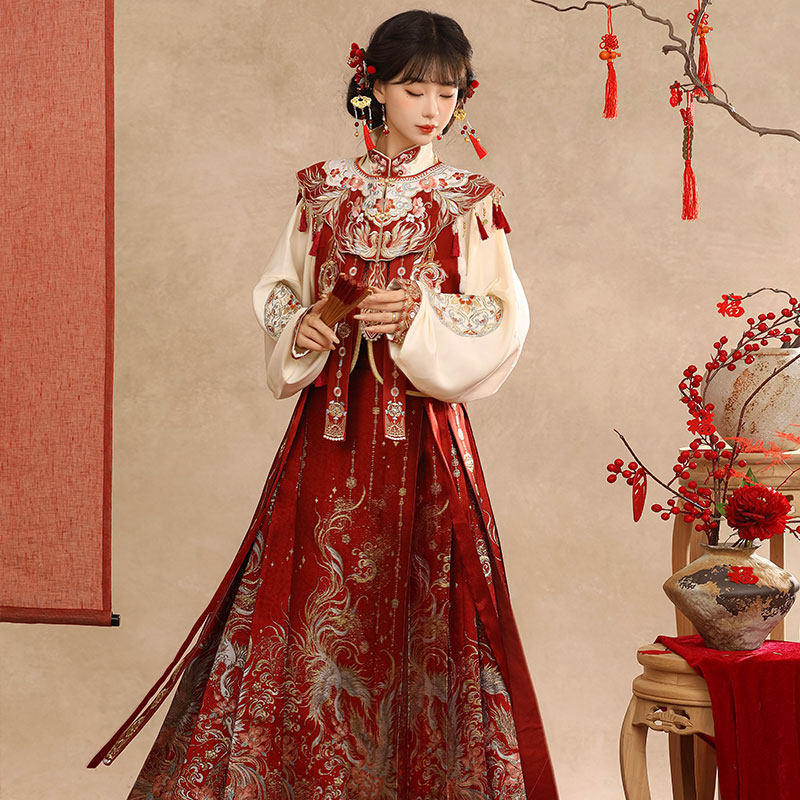 【凰羽】原创汉服女婚服订婚敬酒服红色马面裙套装新款明制拜年服