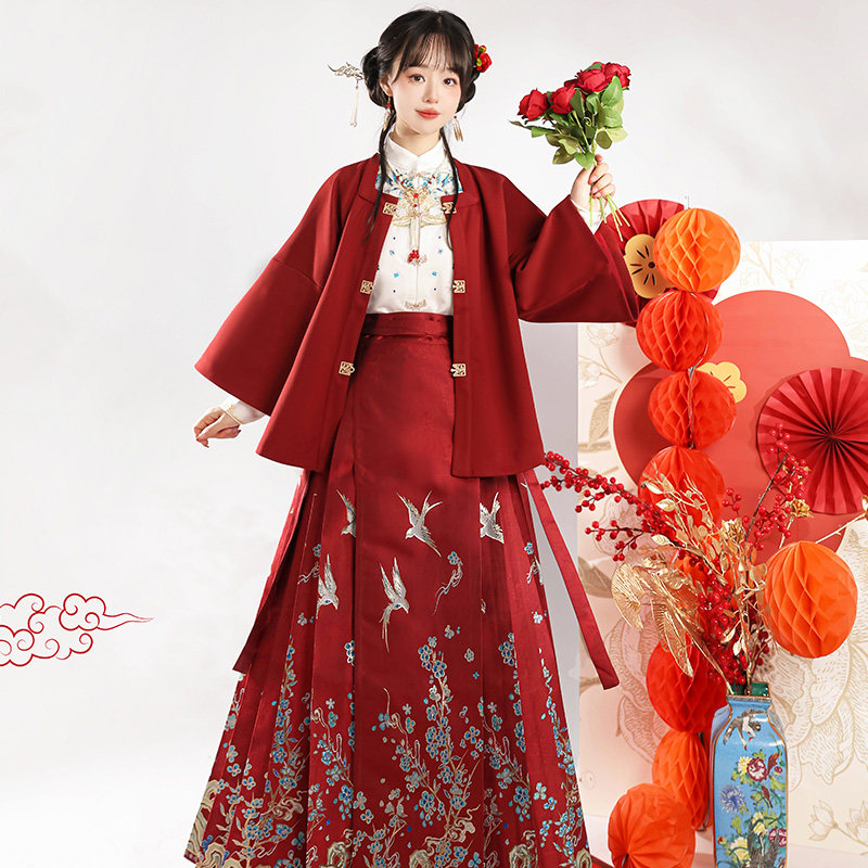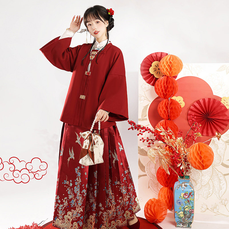 推荐理由:【凰羽】原创汉服女婚服订婚敬酒服红色马面裙套装新款明制拜年服