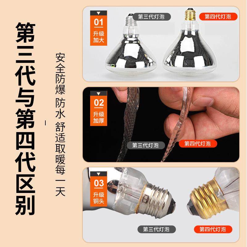 推荐理由:保温灯养殖场专用保温灯取暖灯猪场专用加温加热灯泡小鸡育雏烤灯