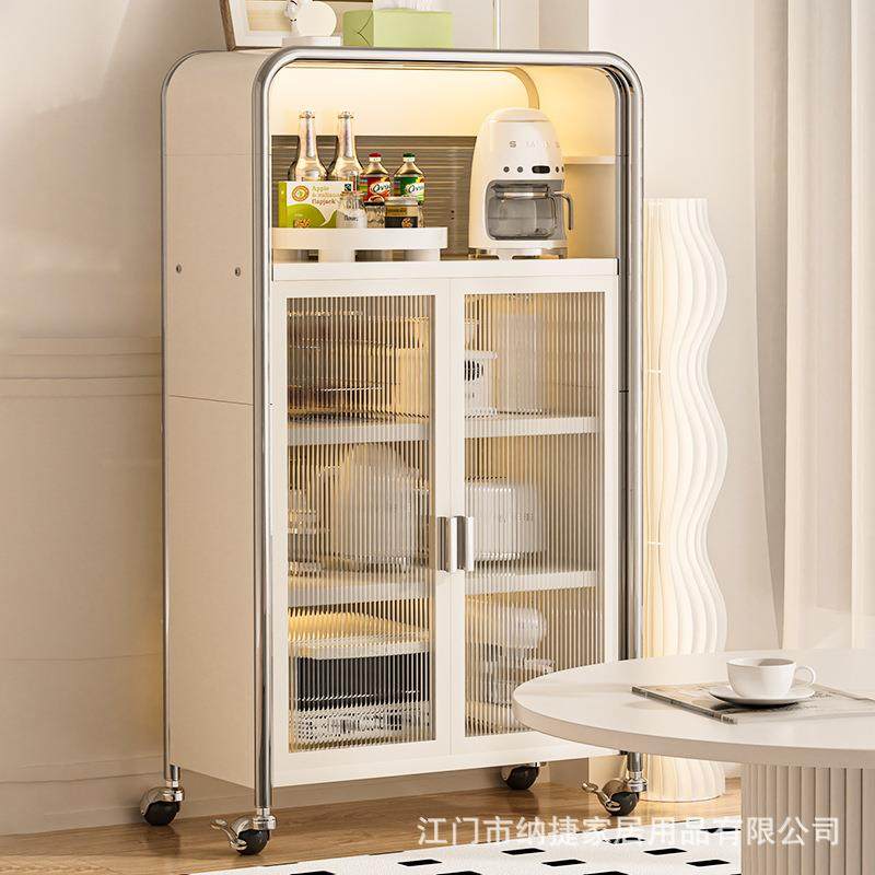 奶油风厨房置物架多层碗橱柜家用落地餐边柜多功能收纳柜子储物柜
