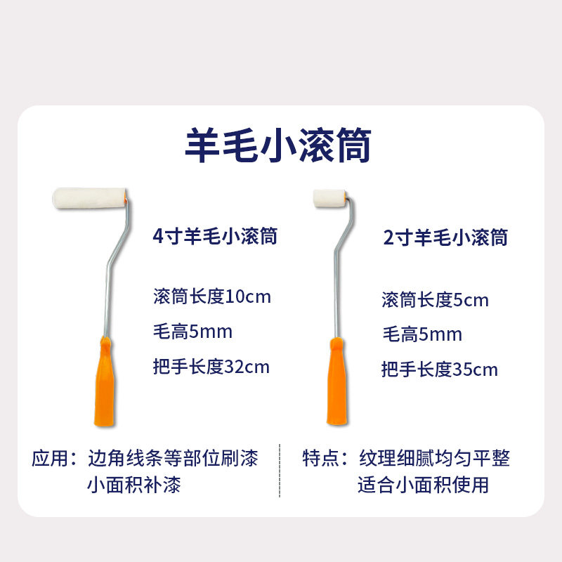 2寸4寸羊毛滚筒刷短毛小滚筒油漆小拇指补墙边角乳胶漆迷你小滚刷
