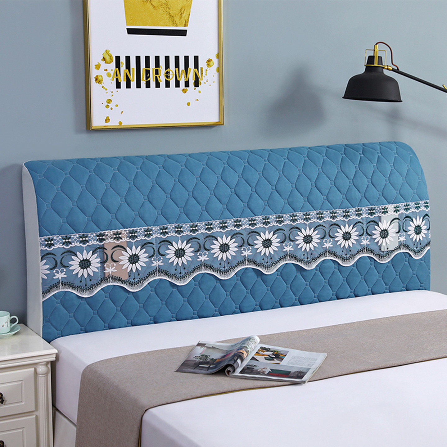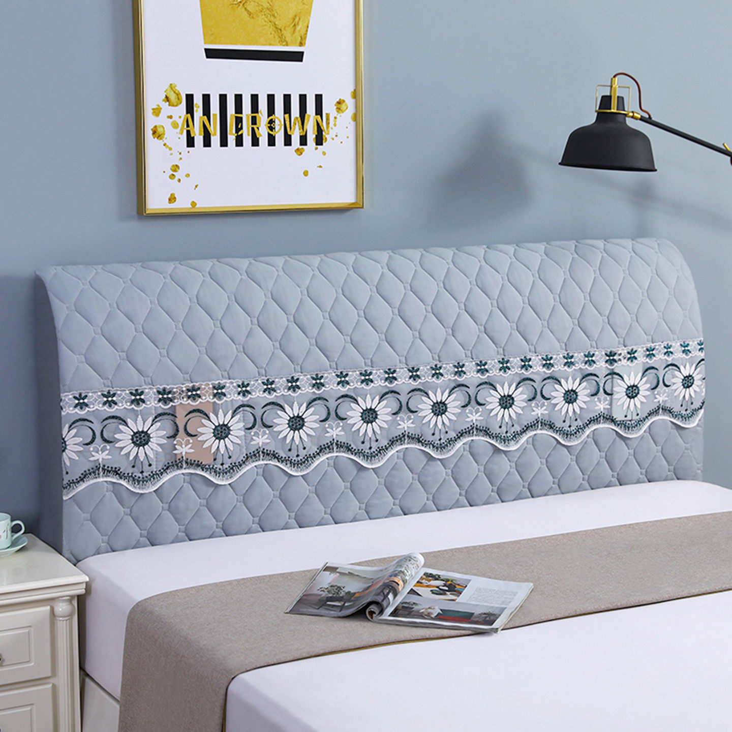 新款弹力软包床头罩套全包布艺夹棉床头套罩中式简约靠垫防尘罩