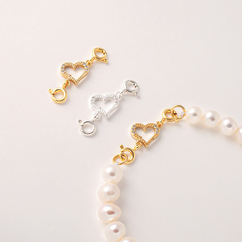 S925纯银项链手链延长扣子爱心DIY手工串珠连接扣头双弹簧扣配件