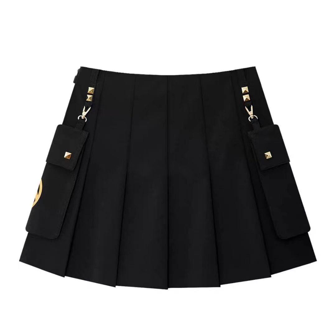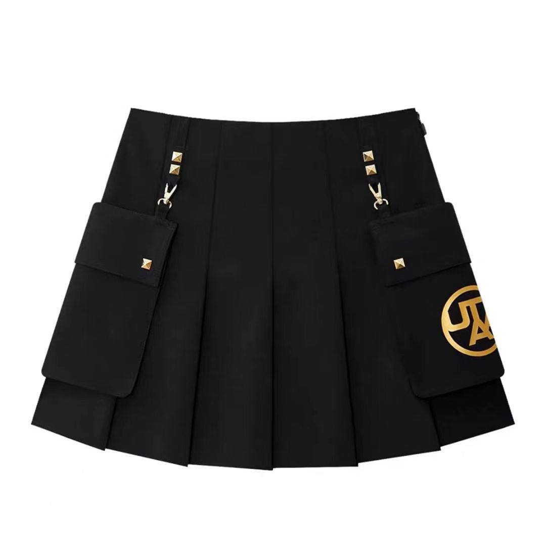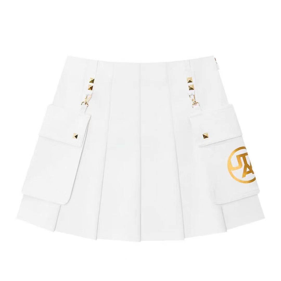韩国高尔夫球服裙子25秋季新款女士百搭半身裙字标口袋百褶短裙