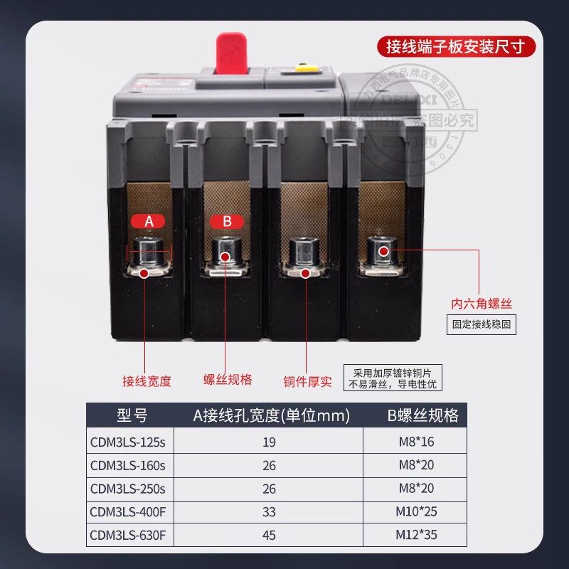 推荐理由:德力西空气开关带漏电保护CDM3LS断路器100A160A塑壳200A250A4004