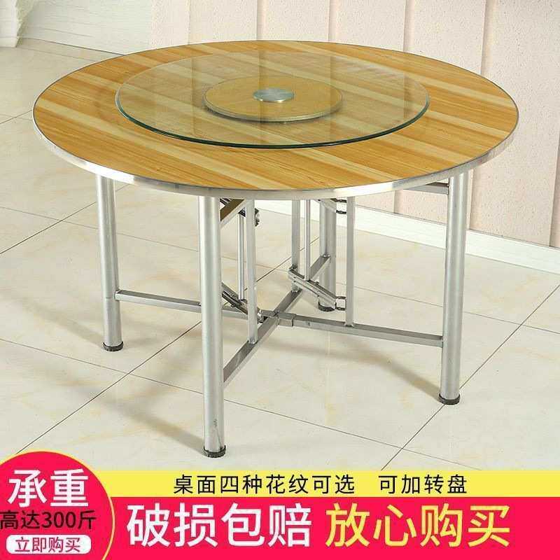 食堂桌子架大圆桌乡村饭桌玻璃转盘圆桌面酒店可带折叠桌家用餐桌