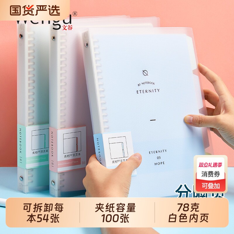 推荐理由:文谷可拆卸A4活页本扣环塑料外壳记事本A5软壳线圈本韩国少女心小清新大学生简约横线B5考研笔记本子文具