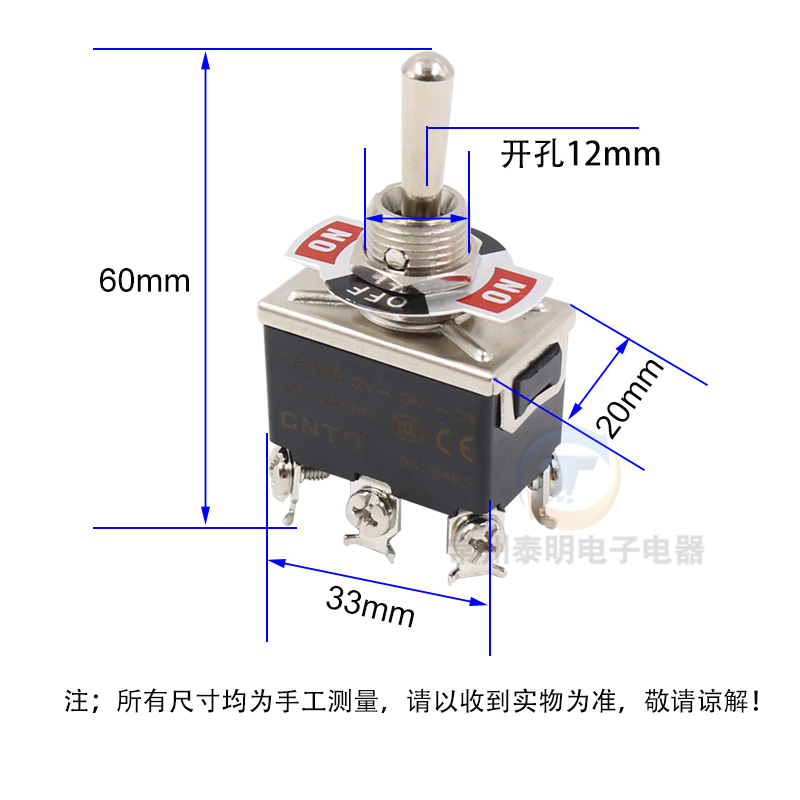 推荐理由:CNTD昌得钮子开关6脚3档C523B摇头摆臂15A双投拨动摇臂纽子扭子妞