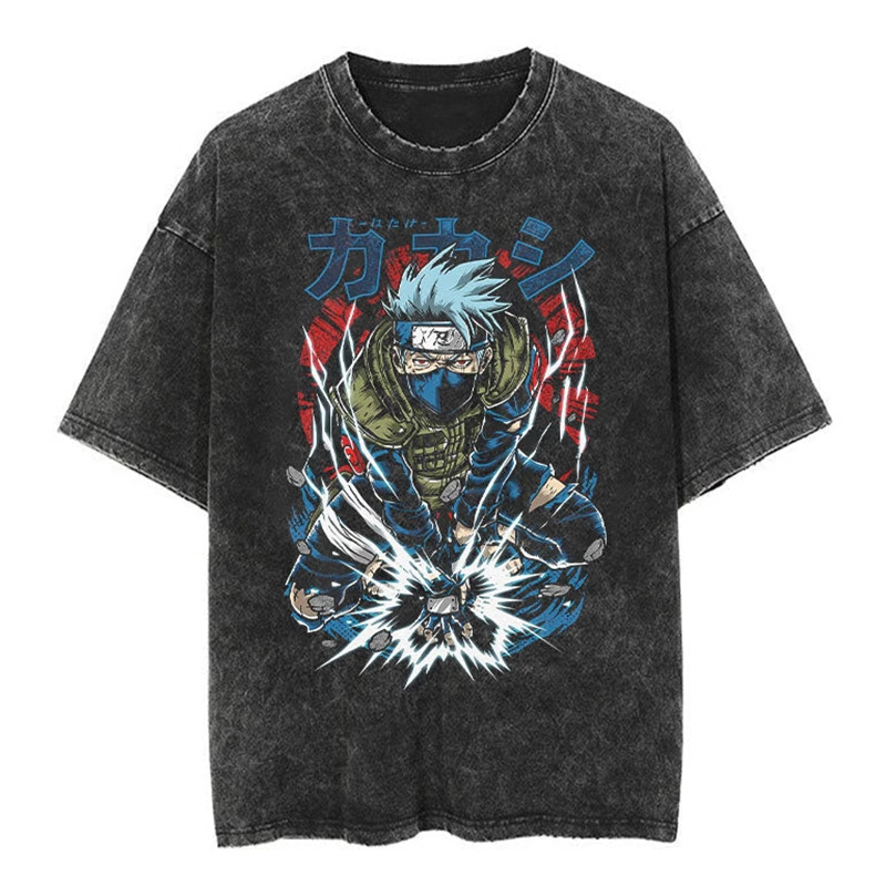 火影忍者自来也NARUTO卡通动漫oversize高街vintage水洗短袖T恤潮