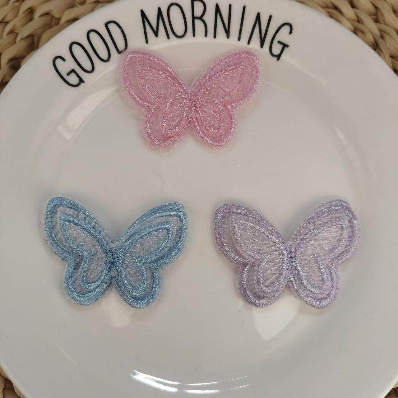 新款三层刺绣蝴蝶 手工diy衣服发夹头饰汉服古风装饰破洞布贴