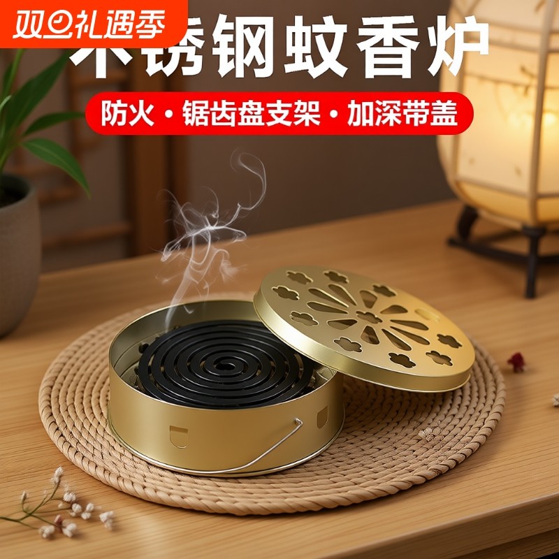 不锈钢防火防烫家用蚊香盘托盘支架带盖接灰盘户外蚊香盒创意香炉