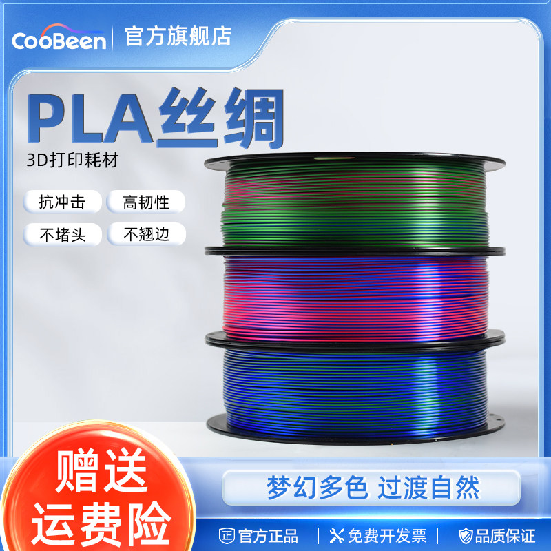 推荐理由:CooBeen蓝极光3D打印耗材PLA丝绸双色三色