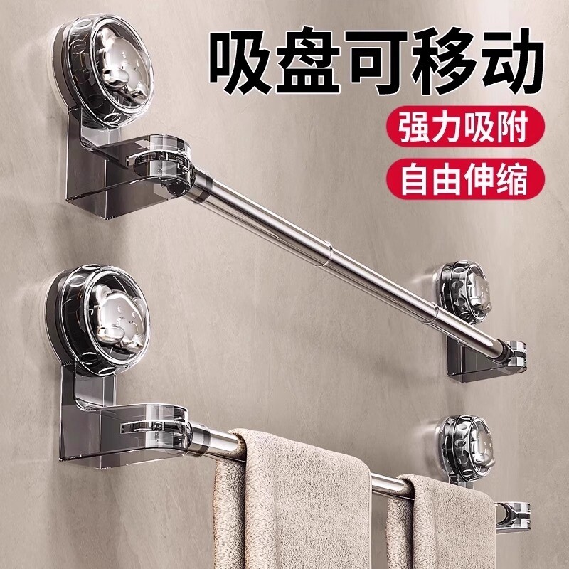 吸盘毛巾架卫生间免打孔浴室伸缩毛巾杆置物架浴巾收纳挂架拖鞋