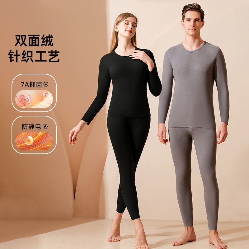 推荐理由:VIVICYCLE冬季保暖内衣套装女男士加绒圆领7A抗菌打底衫秋衣秋裤