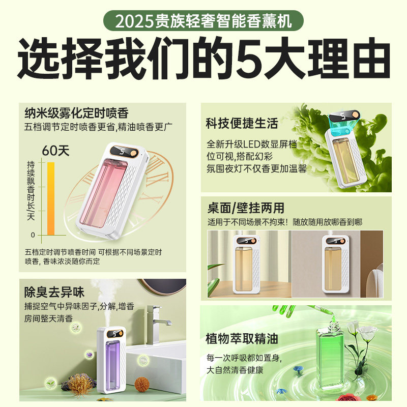 推荐理由:香薰机自动喷香家用持久留香喷雾空气清新剂厕所除臭神器香氛卧室
