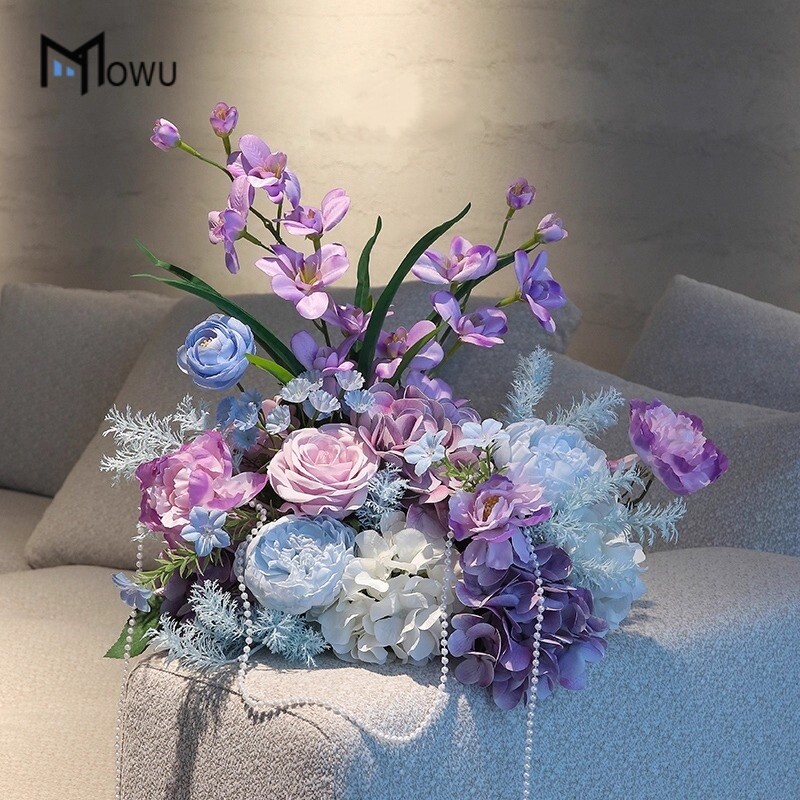 婚礼小桌花摆件高级感花艺仿真花婚庆装饰紫色花假花摆设生日布置