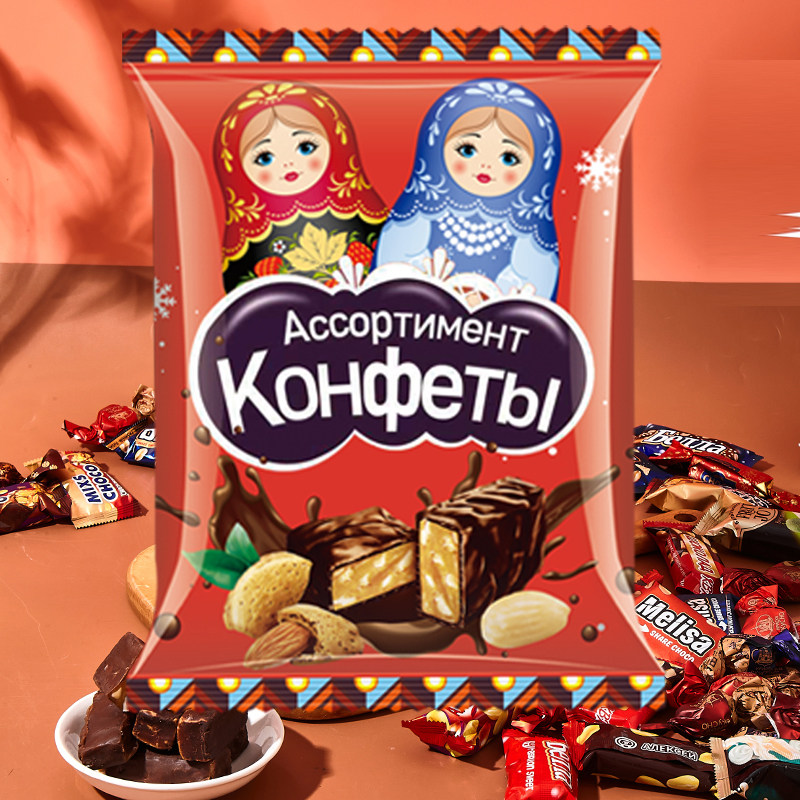 俄罗斯原装进口巧克力混合糖果紫皮零食喜糖圣诞节巧克力结婚礼盒