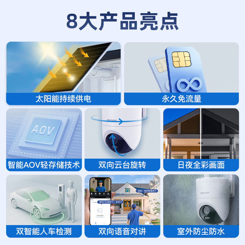海康威视4G太阳能监控摄像影头家用户外360度免插电高清手机远程