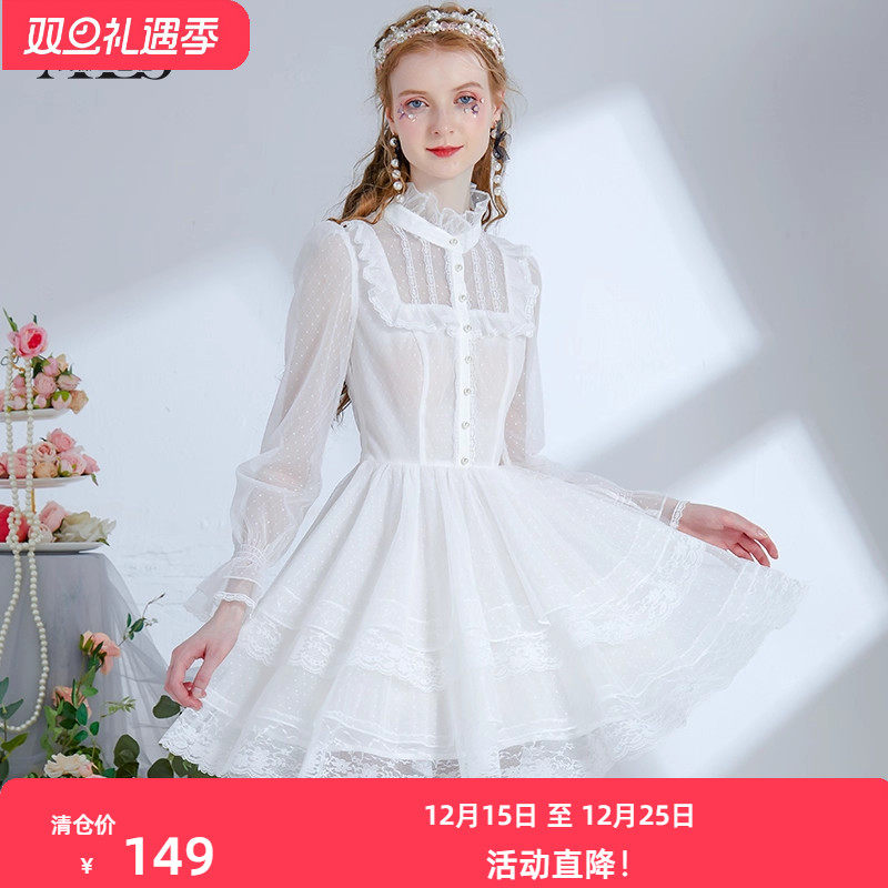 推荐理由:艾丽丝2025秋季新款蕾丝波点甜美白色连衣裙女半高领短款黑色裙子