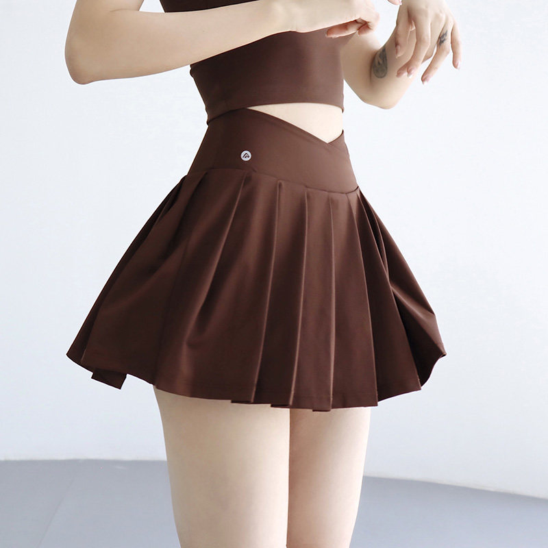 annerun假两件防走光瑜伽短裙女羽毛球裙运动百褶短裙舞蹈网球裙