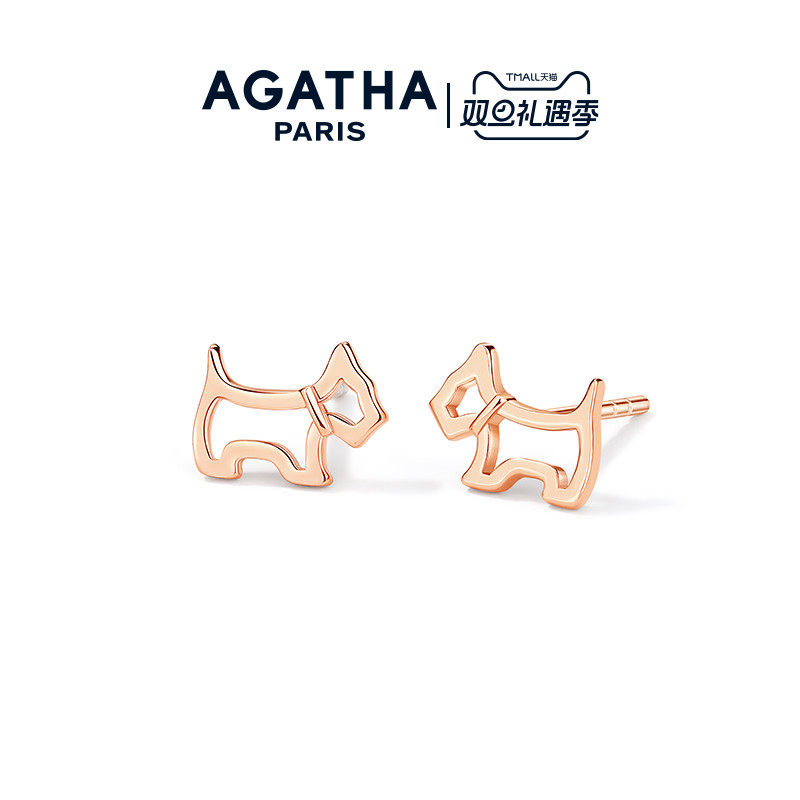 AGATHA/瑷嘉莎臻我镂空小狗耳钉纯银法式精致耳饰轻奢圣诞礼物