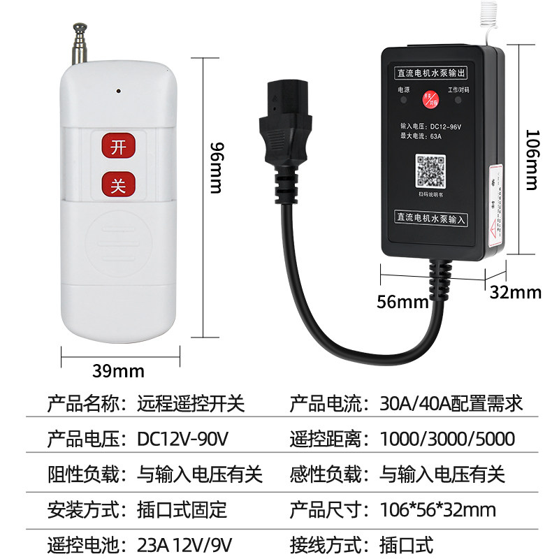 推荐理由:水泵直流遥控开关DC24V免安装电瓶车供电抽水机智能远程控制器72V
