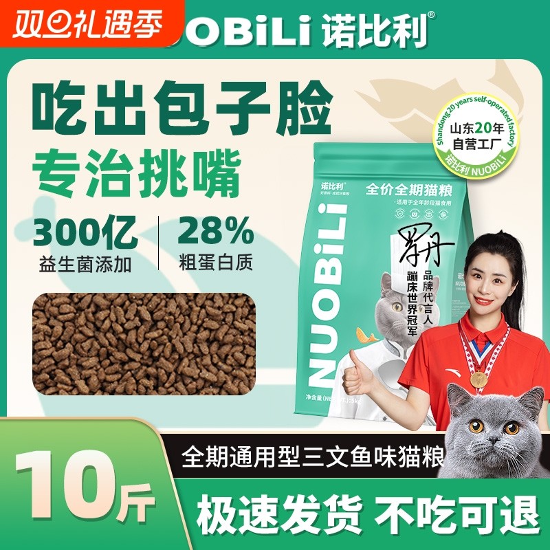 诺比利通用型成幼猫粮三文鱼味10kg增肥营养发腮20斤实惠装全价