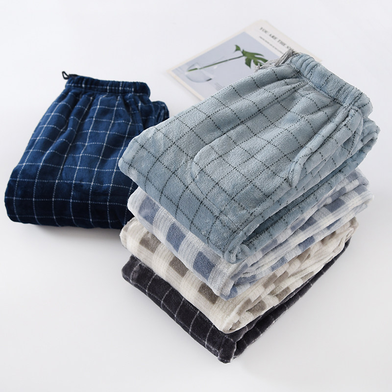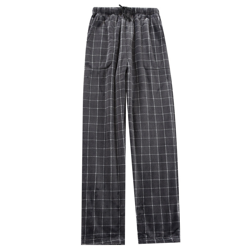 加厚睡裤男长裤法兰绒冬季保暖格子加绒高腰珊瑚绒大码直筒家居裤