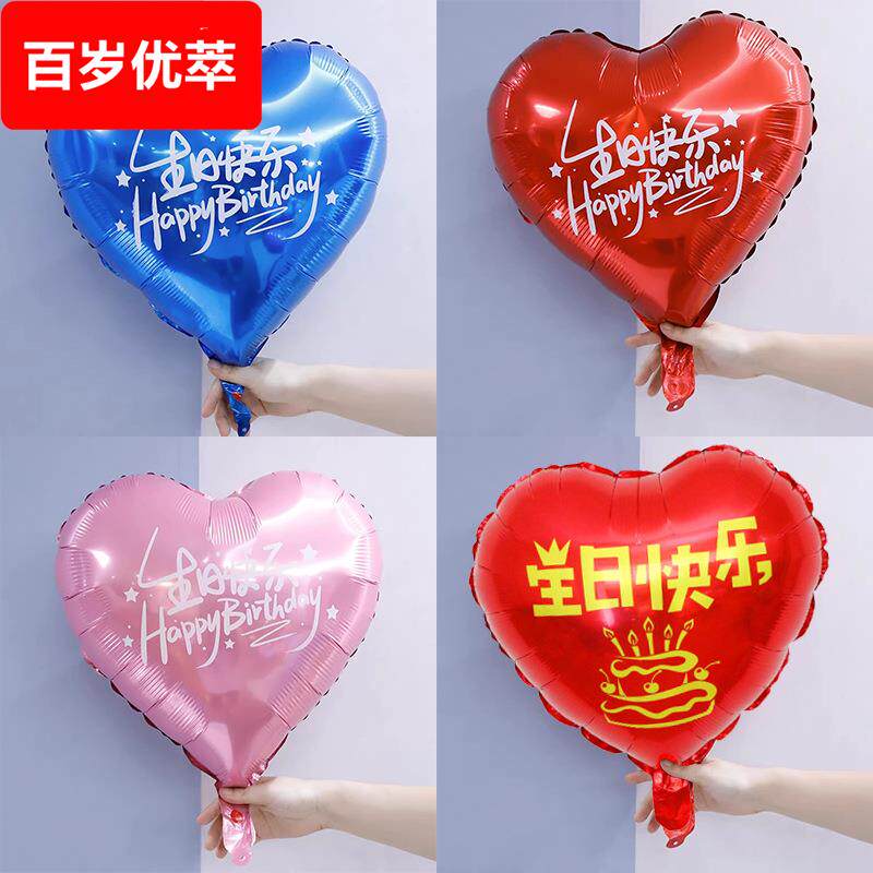 18寸生日快乐爱心铝膜气球成人儿童生日装饰印花中文派对场景布置