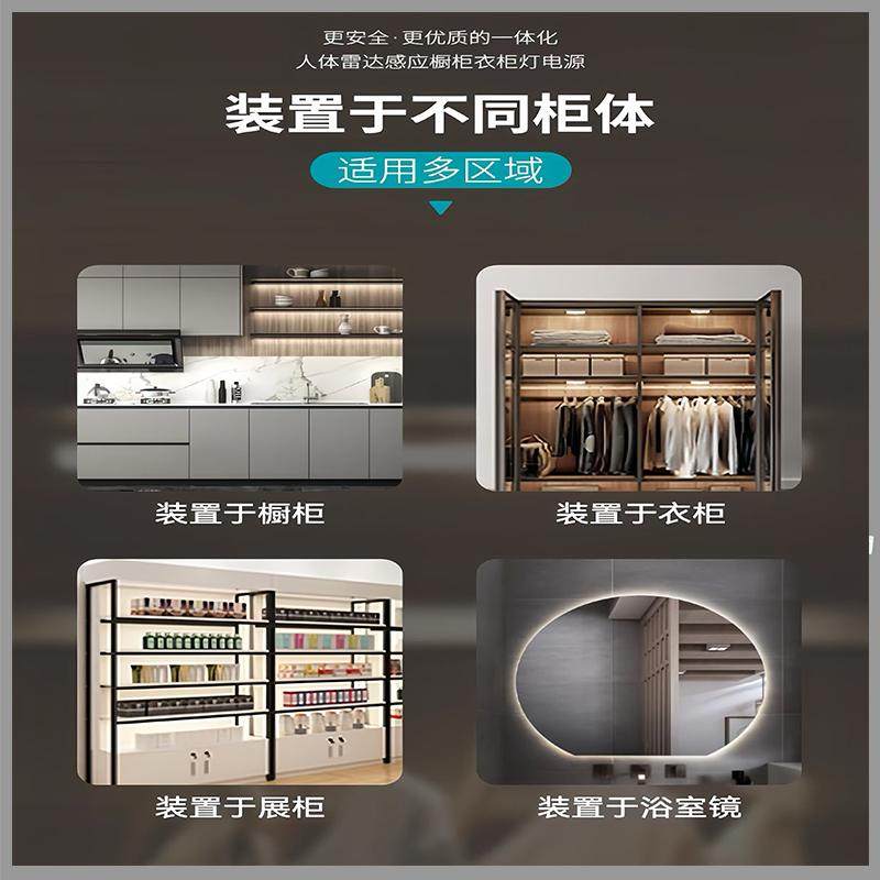 推荐理由:LED灯带智能人体运动开关浴室镜雷达感应电源12v衣柜鞋柜储物用