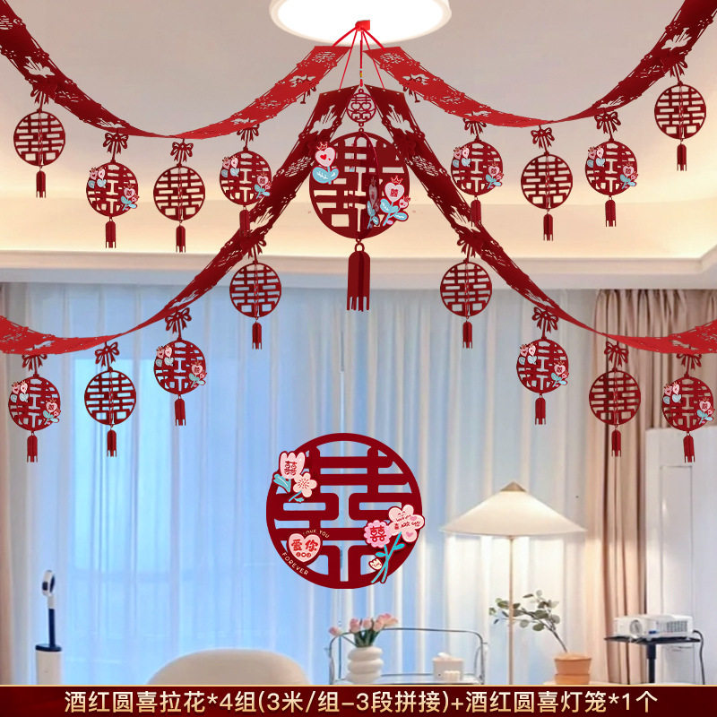 拉花结婚婚房布置套装新房客厅装饰男方女方婚礼卧室房顶挂饰用品