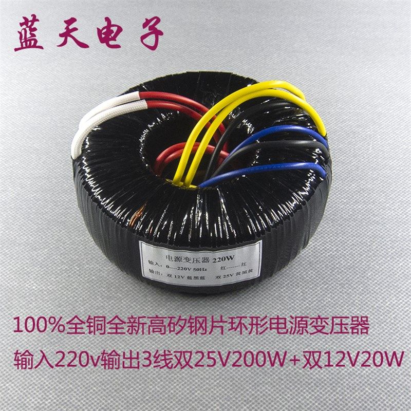 全无氧铜线环形变压器220V转双25V200W+双12V20W 6线输出 共220W