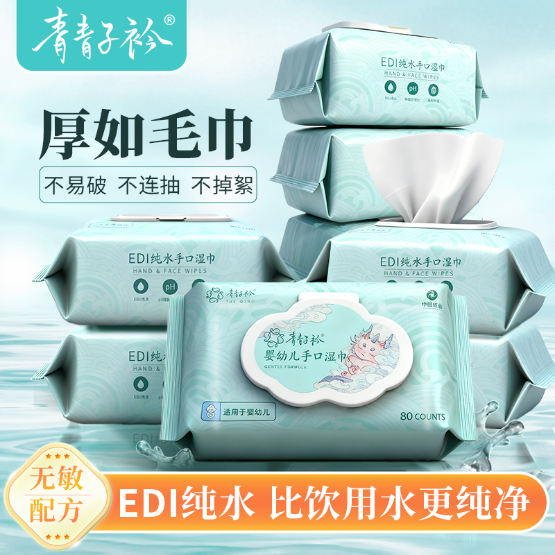 青青子衿手口湿巾家用大包80抽加大加厚纯水婴儿湿纸巾宝宝专用
