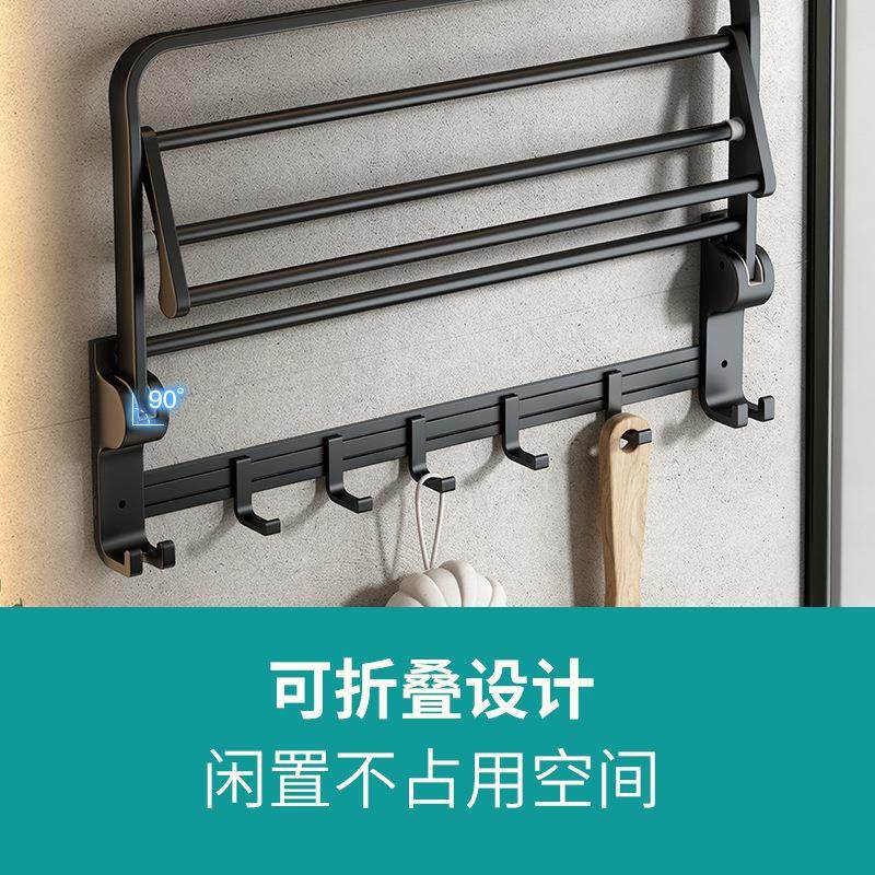 免打孔浴室置物毛巾架 卫生间黑色太空铝浴巾架卫浴五金挂件套装
