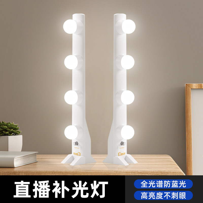 手机直播补光灯主播专用美颜补光灯电脑桌面双排灯三色柔光灯化妆灯面部打光四排灯拍摄视频背景网红摄影灯