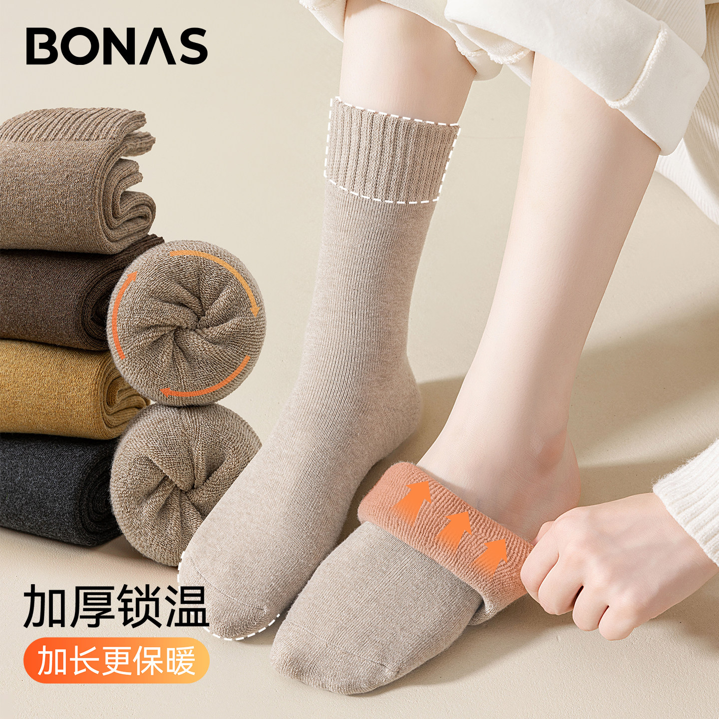 袜子女秋冬季加绒加厚中筒雪地袜子女款含羊毛棉袜保暖毛圈长筒袜
