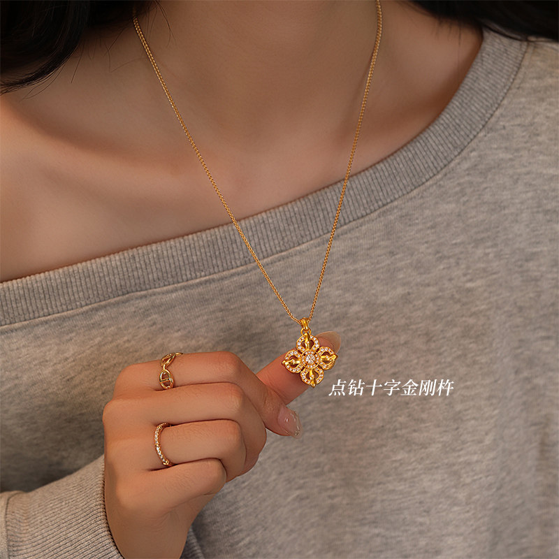 推荐理由:十字金刚杵四叶草吊坠女镶钻新中式项链2025新款秋冬毛衣链高级感
