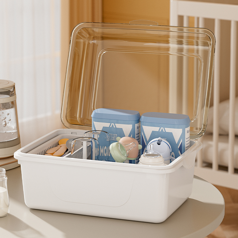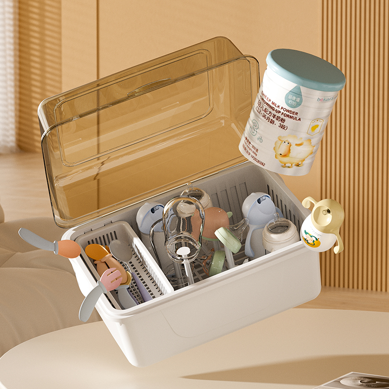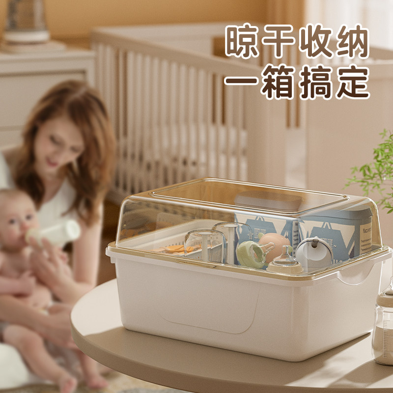 放宝宝奶瓶收纳箱沥水架子带盖防尘婴儿辅食工具餐具碗筷收纳盒柜