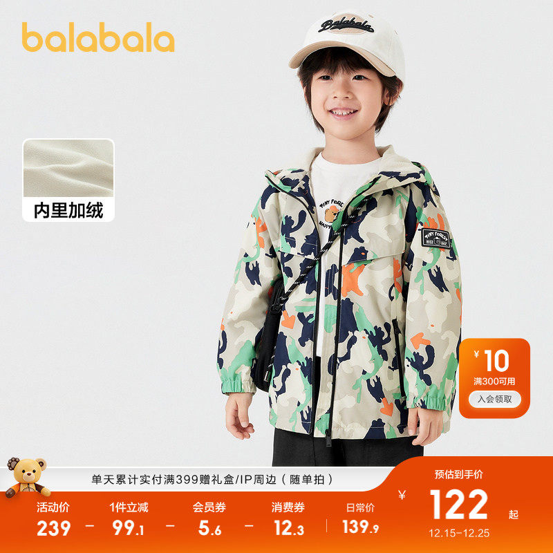 巴拉巴拉童装儿童外套男童春秋装2025软壳衣加绒连帽百搭小童潮酷